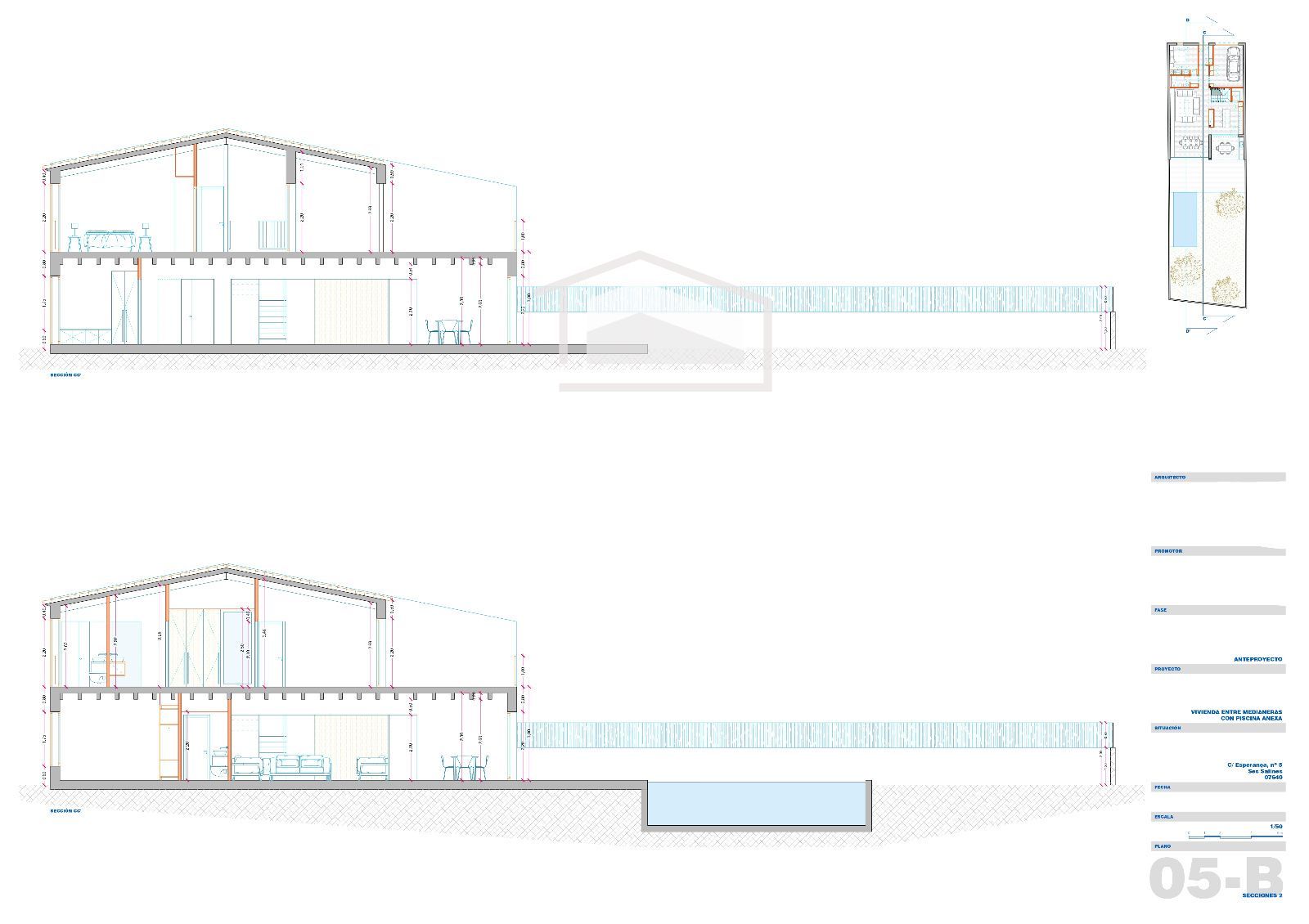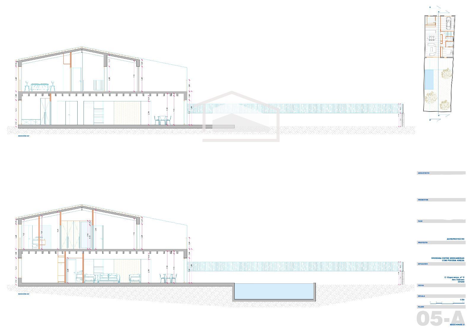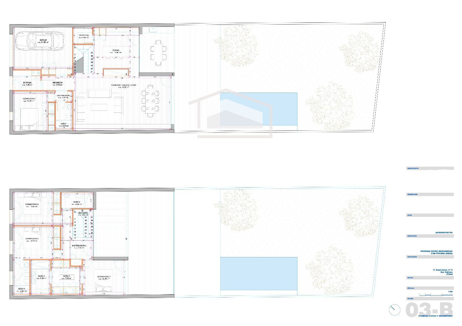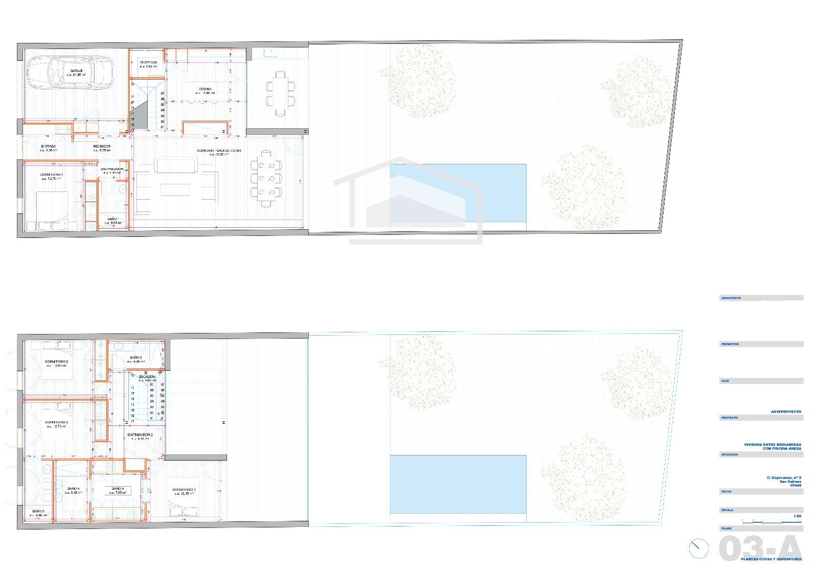 L’habitatge es projecta sobre una parcel·la d’aproximadament 250 m² i comptarà amb una superfície construïda propera als 330 m², distribuïts en dues plantes. Disposa de forjat sanitari, fet que garanteix una major eficiència i durabilitat estructural, a més de millorar l’aïllament tèrmic i la protecció davant la humitat.