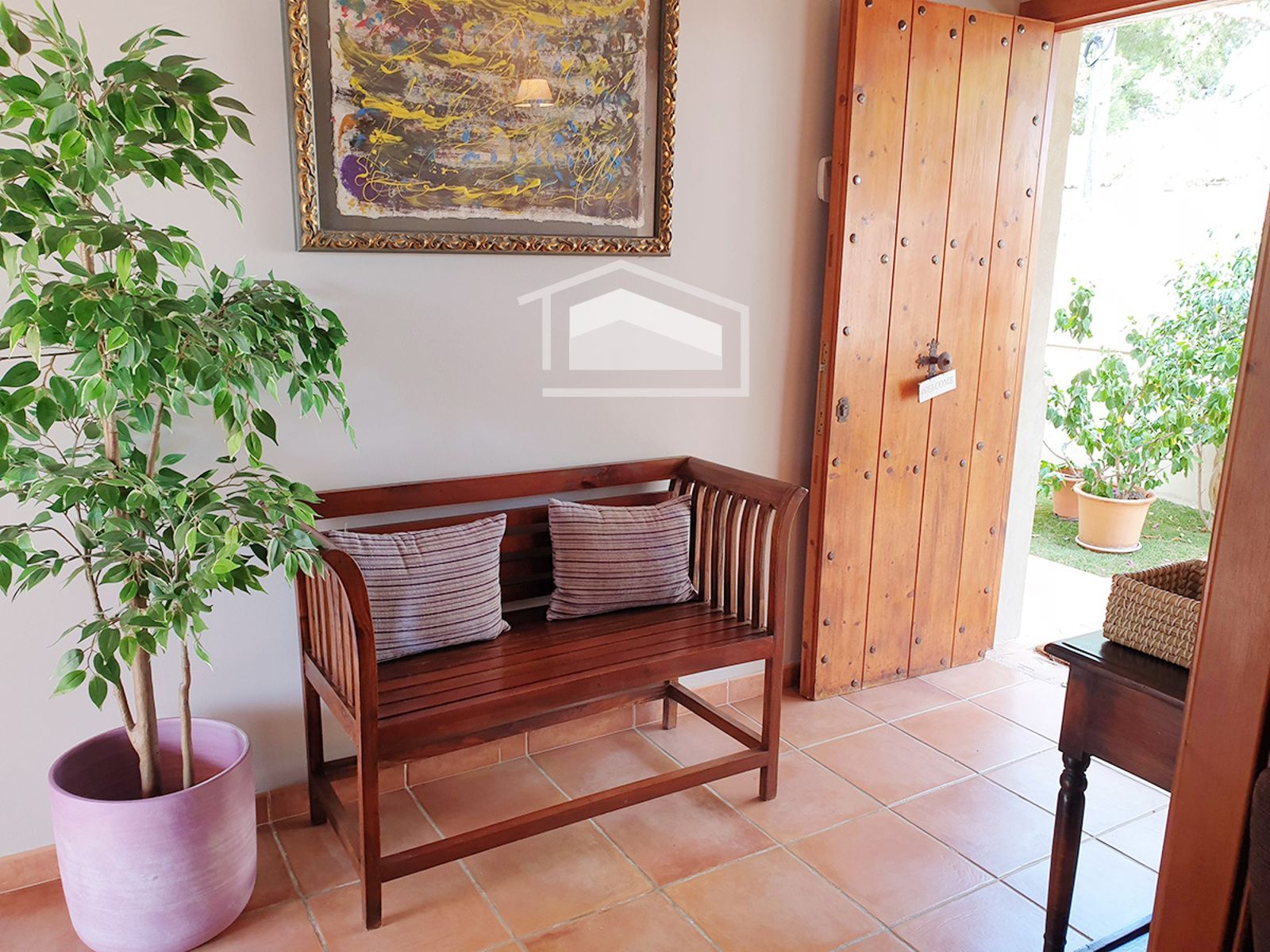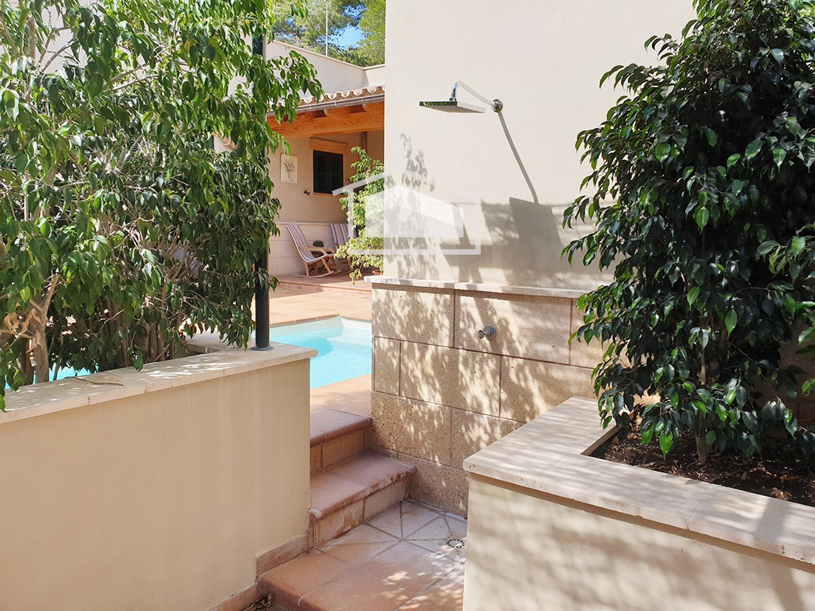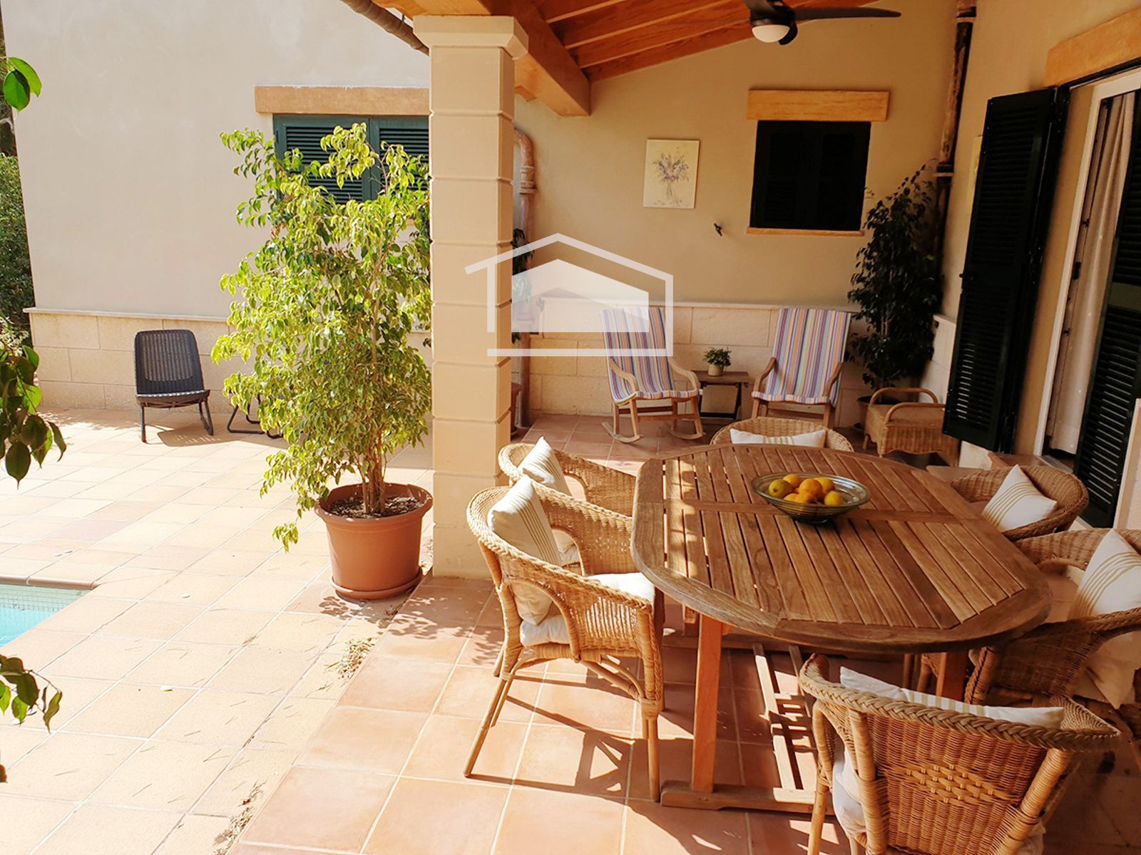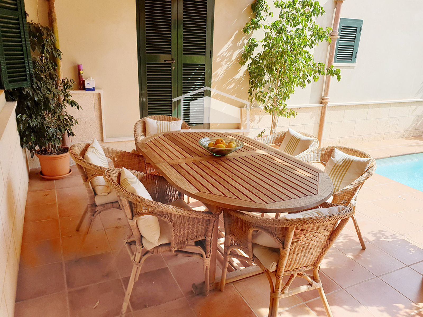 Cuenta además con coladuría independiente, despensa, aljibe, trastero y zona de aparcamiento exterior. En el exterior, el jardín privado alberga una piscina, ideal para disfrutar del clima mallorquín durante todo el año. La propiedad se vende completamente amueblada y equipada con aire acondicionado.